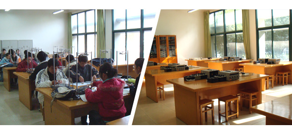 物理基础实验室:下设有力学实验室、热学实验室、电学实验室、光学实验室、演示物理实验室,是我校1999年第一批通过浙江省教育厅合格评估的基础课教学实验室,承担了全校各专业的《大学物理实验》和开放实验教学的教学任务,主要开设了覆盖力、热、电、光的60多个物理实验项目,同时也是我校的物理科技创新竞赛基地。