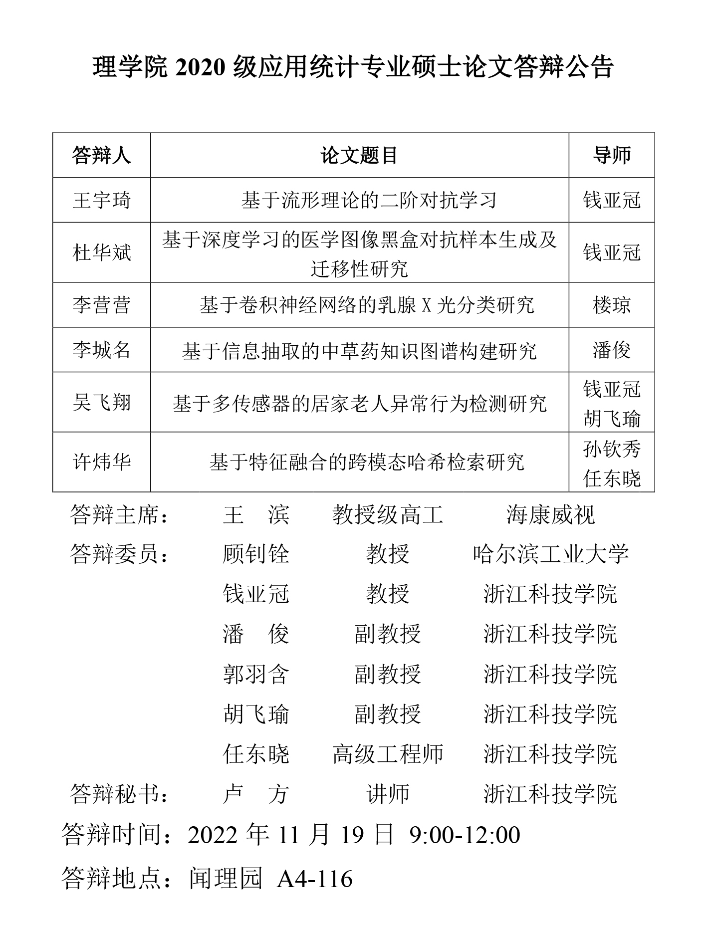 亚洲博彩app 2020级应用统计专业硕士论文答辩公告