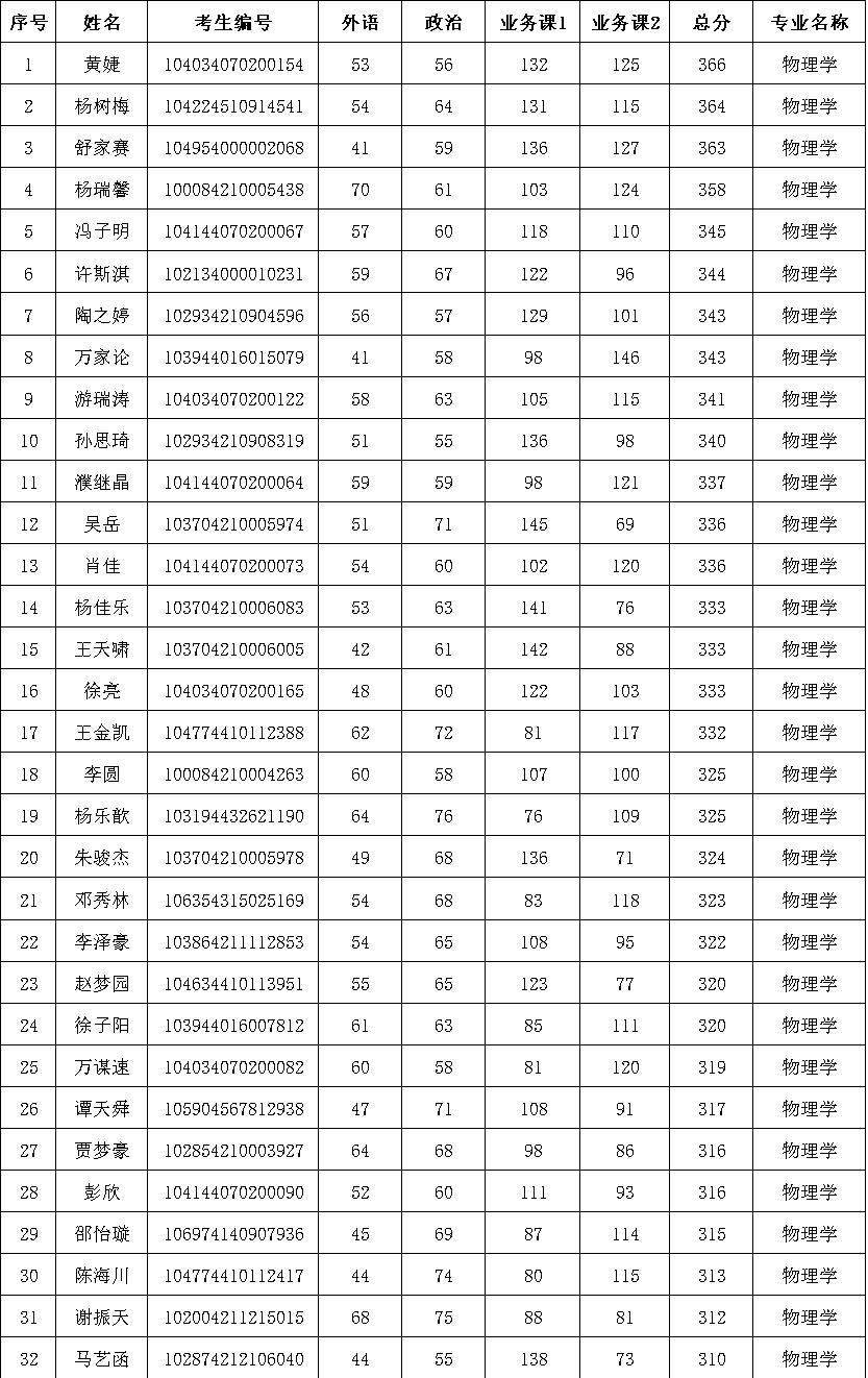 根据《亚洲博彩app-亚洲体育博彩平台 2024年硕士研究生招生复试录取工作实施细则》中物理学调剂的基本要求,及复试比例1:1.5的差额,按照初试总分由高到低的原则,复试面试名单如下: