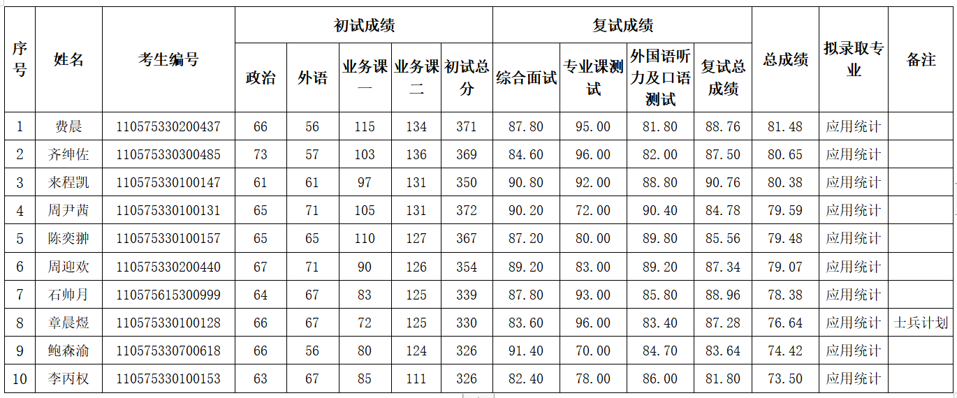 备注:复试成绩=综合面试×50%+专业课测试×30%+外语听力及口语面试×20%