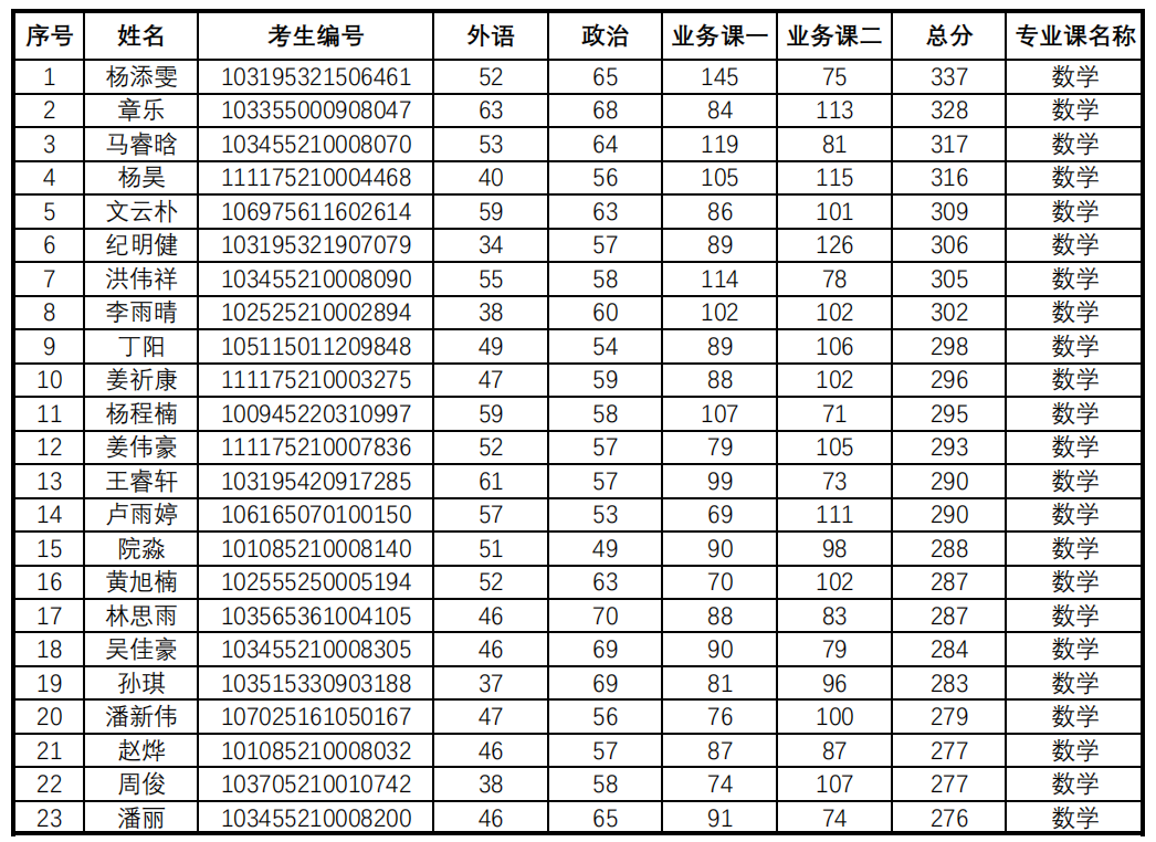 根据《亚洲博彩app-亚洲体育博彩平台 2025年硕士研究生招生复试录取工作实施细则》中数学调剂的基本要求,及复试比例1:1.5的差额,按照初试总分由高到低的原则,复试面试名单如下: