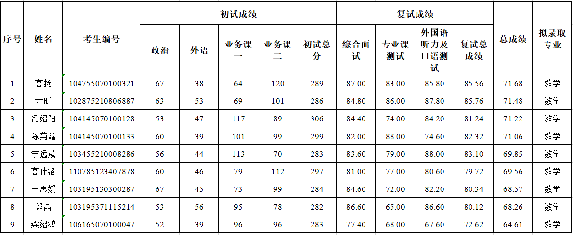 经考生初试、复试等各个环节,亚洲博彩app 招生工作领导小组确认,现对拟录取的考生进行公示(详见下表),公示时间为2025年4月16日至4月22日(七天),如有疑义,请以书面的形式反映,反映问题要实事求是,署本人真实姓名。