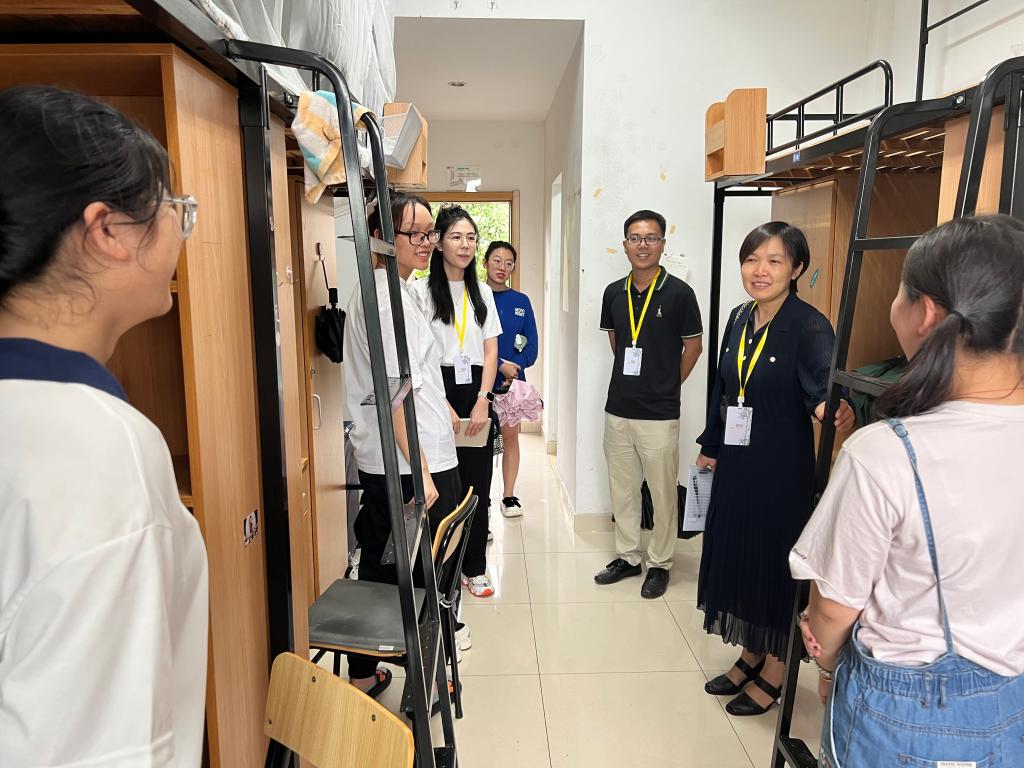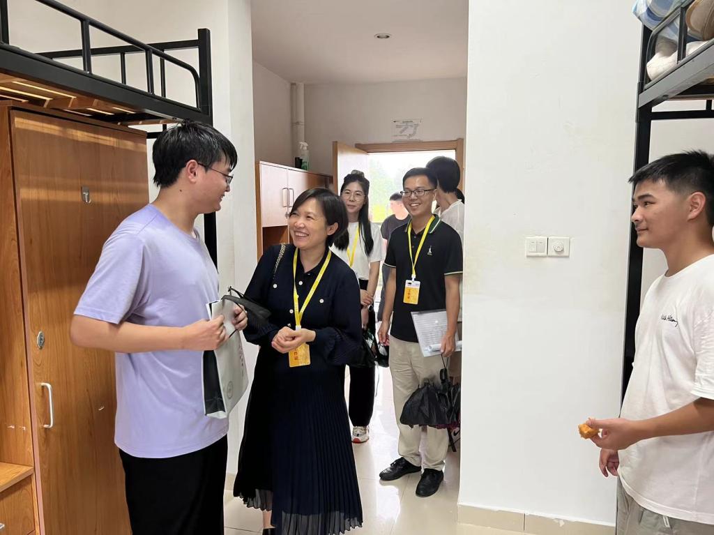 党委书记张掬婴、党委副书记黄奕筱、学工办主任蔡瑞康、新生班主任、助班等一同走访学生宿舍。走访期间,张掬婴书记对新生以往的成绩表示了肯定,并寄予殷切希望,祝愿每位新生都能在今后的学习生活中积极奋进,梦想成真。黄奕筱副书记提醒大家快速调整好状态,掌握好新的学习节奏,找到适合自己的学习方法。亚洲博彩app