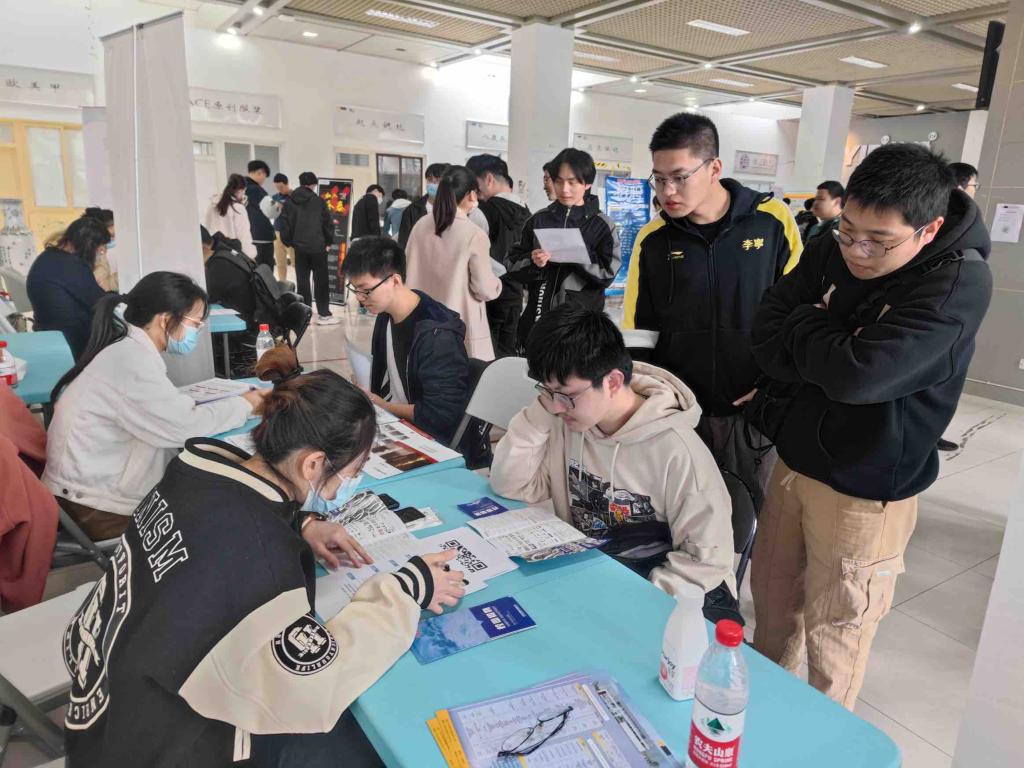 毕业生在志愿者的引导下有序排队、扫码签到,同时辅导员也在招聘会现场指导同学们根据自己的专业和能力匹配合适的岗位,鼓励同学们大胆尝试、主动投递简历。到场同学积极与企业沟通,在本次招聘会中得到了充分表现自我的机会。