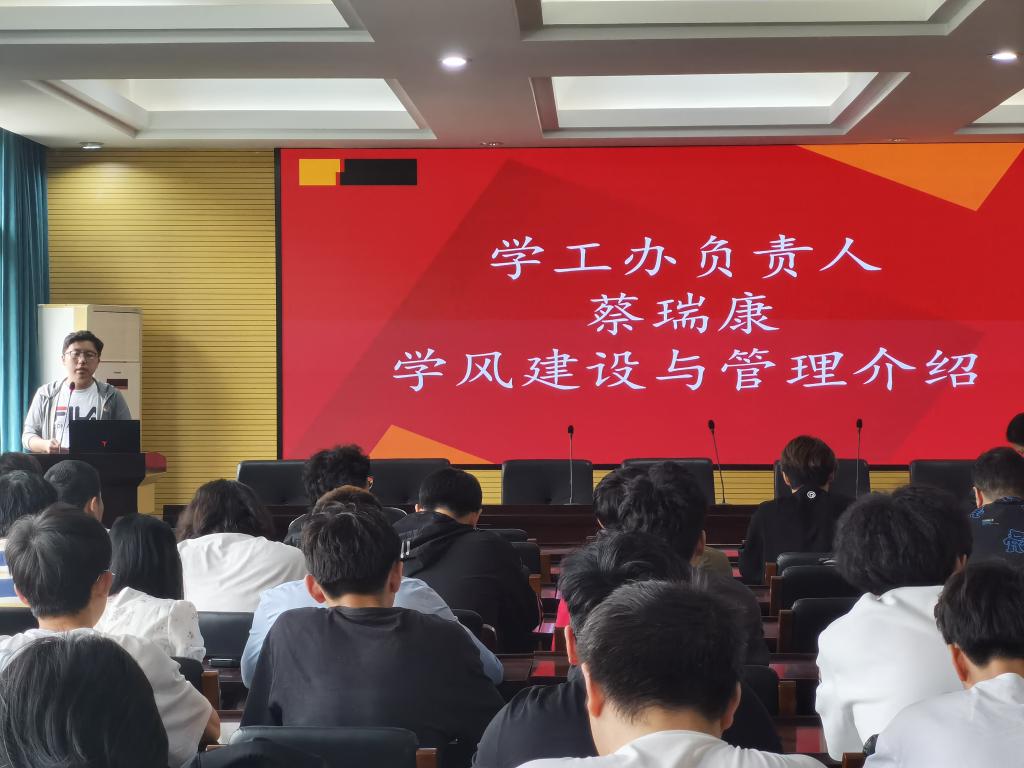 蔡瑞康进行了学风建设与管理相关内容的介绍,结合学生手册和工作案例,对同学们建设优良学风进行了动员,并介绍接下来亚洲博彩app