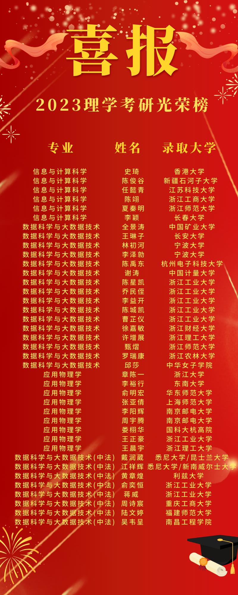 理学喜报 | 亚洲博彩app 2023届毕业生考研光荣榜