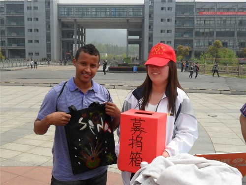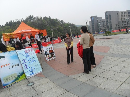 该活动于中午11点开始,在校圆形广场正式举行。宣传部的干事和青协的志愿者们积极参与活动并号召大家为贫困儿童献一份爱心,为公益事业出一份力。在队员的热情呼吁下,现场气氛非常热烈,很多同学和老师都献出了自己的爱心和对孩子的祝福。