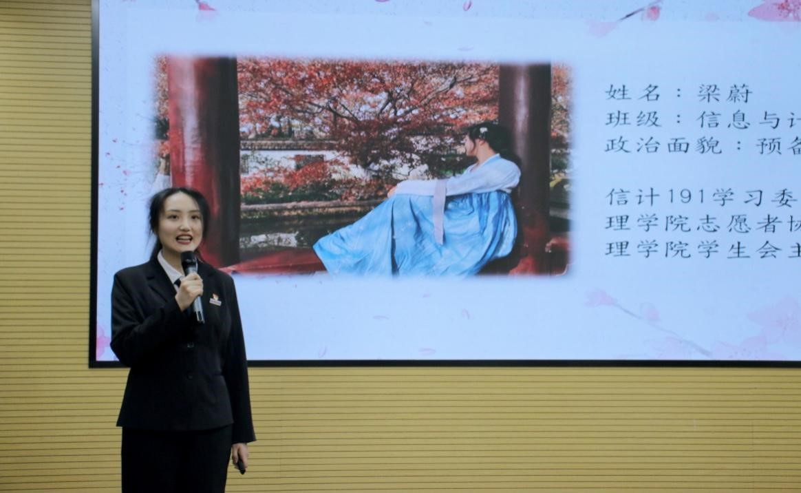 随后,璀璨之星们开始个人风采展示。信息与计算科学191班的班长陈奕翀从学习生活和班团工作出发,分享她的带领班级斩获各项荣誉的故事。数据科学与大数据技术(中法班)191班陆文婷创立了多项创新项目和发明专利,她讲述了她的科研成果和竞赛之旅。信息与计算科学191班梁蔚始终牢记党的教诲,用实际行动诠释了责任与担当,她分享了她与各类志愿活动、团学工作的故事。信息与计算科学191班史琦,她的思政微课发布在各大官方媒体上,且勇攀各科高峰,囊括学业、社会实践、团学工作、科技竞赛各类奖项。数据科学与大数据技术191班林欣颖,踏实学习,勤恳工作,获多项竞赛奖项,积极参与各种志愿活动,并通过亚洲博彩app