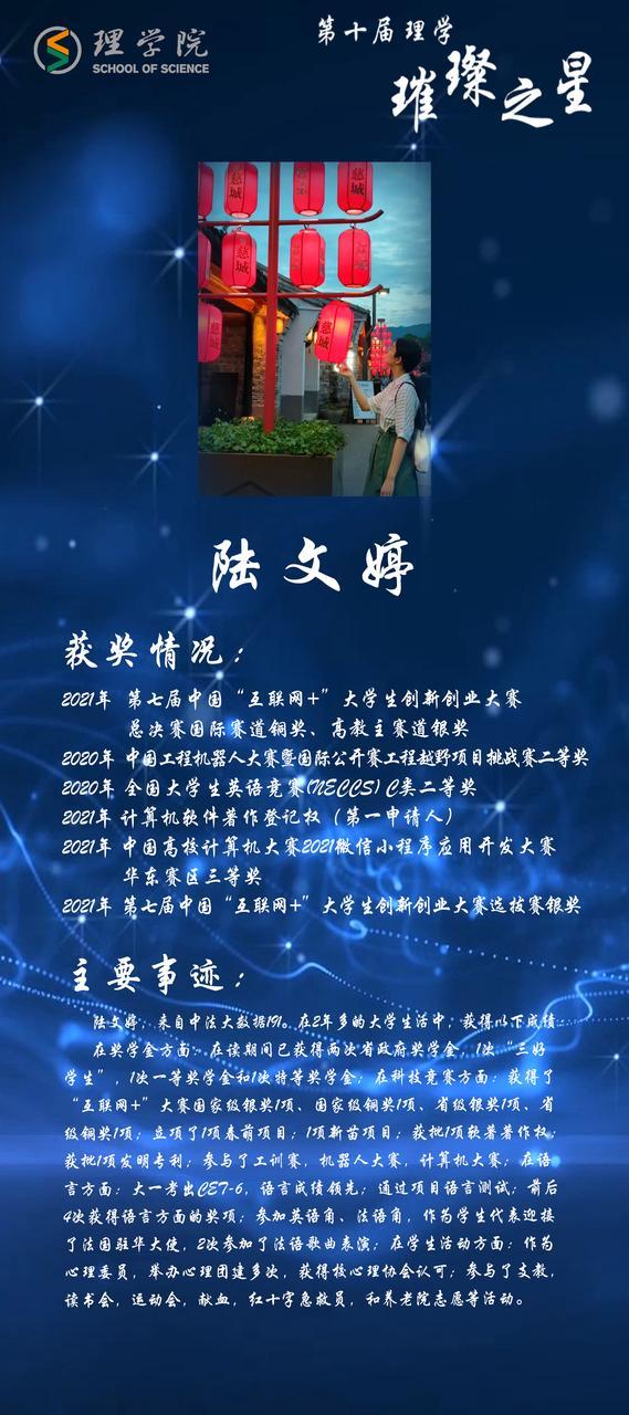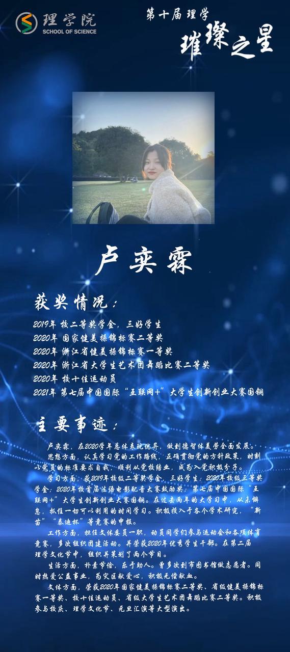 灿若繁星,汇聚理学星光;和山之畔,照亮浙理梦想。璀璨之星,自强不息,他们如夜空的明星,为我们指引前方的道路;理学学子,厚德载物,用更好的自己推动着亚洲博彩app