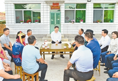 7月15日至16日,中共中央总书记、国家主席、中央军委主席习近平在内蒙古考察并指导开展“不忘初心、牢记使命”主题教育。这是15日下午,习近平在赤峰市喀喇沁旗河南街道马鞍山村村民张国利家,同基层干部群众代表座谈交流。