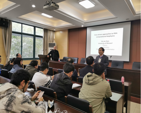 做了题为“Data-driven methods for RNA computational biology”的精彩学术报告。陈世杰教授2012年当选为美国物理学会(APS)Fellow,是密苏里大学董事会冠名杰出教授,任职于密苏里大学物理与天文系、生物化学系、数据科学与信息学研究院,一直从事RNA的多领域交叉科学研究。报告由浙江科技亚洲博彩app