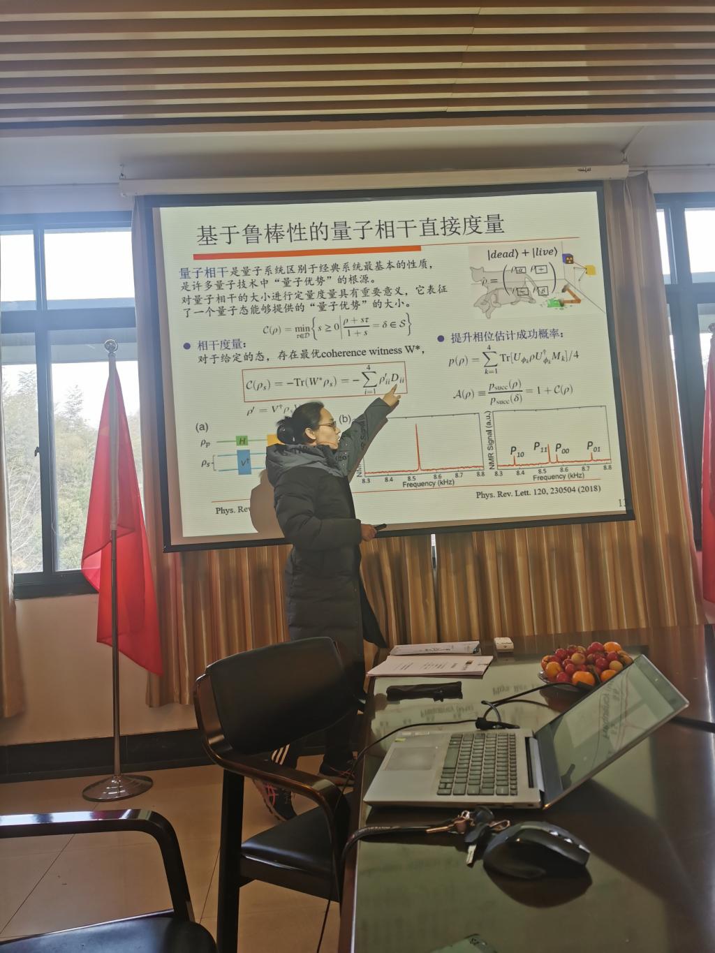 活动的第一部分是学术沙龙。首先王恒岩和颜益营两位老师分别做了题为“熵不确定关系的理论与实验研究”、“广义宇称与共振荧光谱的对称性”的学术报告。参会老师们积极与报告人进行探讨交流,现场学术氛围浓厚。