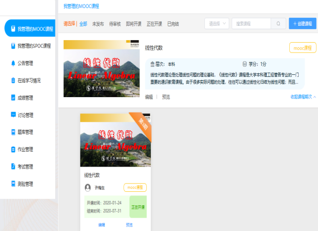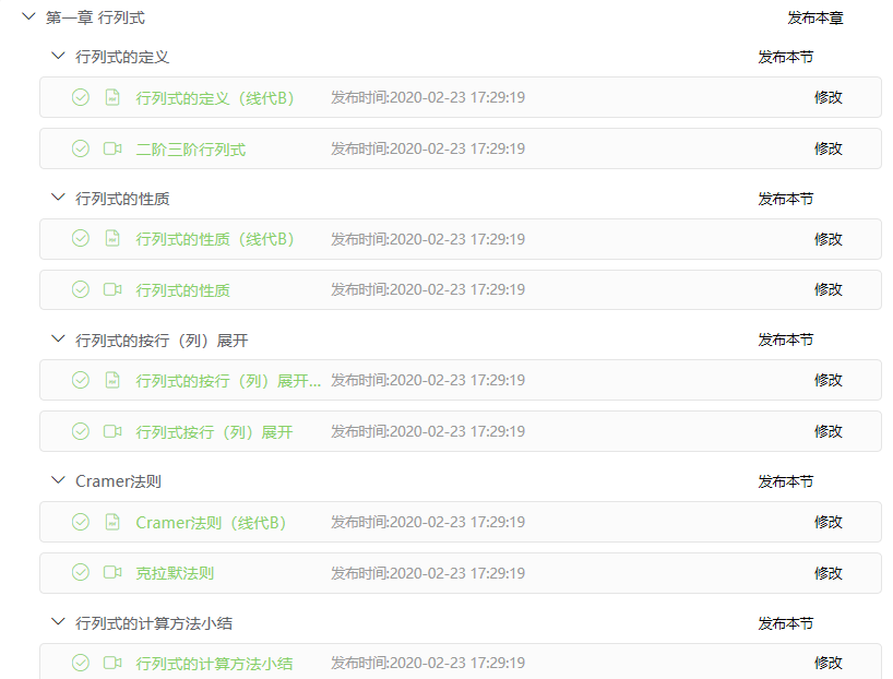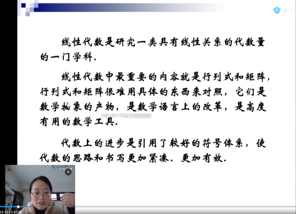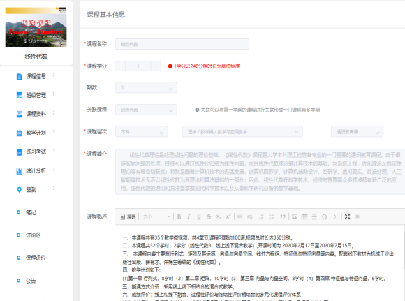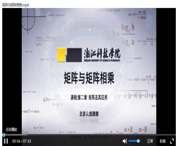 针对学生,以章节的形式提前在浙江省高等学校在线开放课程共享平台上发布即将学习的微课视频,本课程共有35个教学微视频约100道习题,视频包括线性代数四个章节的内容,每个微课视频时长10分钟左右,由浙江科技亚洲博彩app