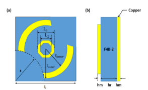 对于电磁吸波器而言,超材料的吸收损耗特性正好变成了优点。该论文在微波频段通过利用神经网络计算吸收器的最优尺寸参数,设计了一种由金属表面和连续金属层组成的非对称结构与圆双分裂环吸收器,由介电材料层和两层金属组成,其中金属层由新型双裂环谐振器(DSRR)和中心图案组成。该吸收器的平均吸收率超过90%,具有良好的宽带吸收特性。