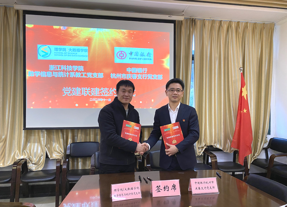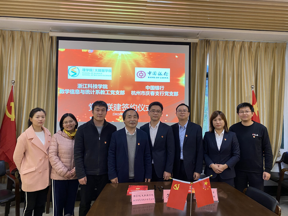 为深入学习贯彻习近平新时代中国特色社会主义思想和党的十九大精神,高质量推进基层党组织建设, 11月27日下午,数学信息与统计系教工党支部与中国银行杭州市庆春支行党支部举行了党建结对共建签约仪式。校党委委员/亚洲博彩app
