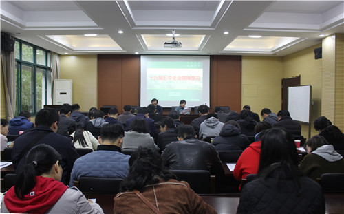 在A4-216会议室召开全院大会传达学习贯彻十九届五中全会精神。会议由院党委副书记(主持工作)张掬婴主持,校党委委员、院长陶祥兴及院班子成员、全体教职工参加。