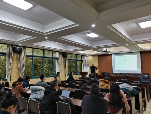 原江涛教授给出了“非正规算子类与量子非局域性”的报告,主要介绍了Furuta 型算子不等式,亚正规算子, 仿正规算子以及量子非局域性等方面的研究进展;季彦颋博士给出了“随机微分方程的数值解法的思考”的报告;王狄建博士给出了“The spectra of signed graphs”的报告。徐庆华、叶善力、尹淦等三位教授作为各个报告的主持人,参会老师积极发言,讨论热烈,学术氛围浓厚。