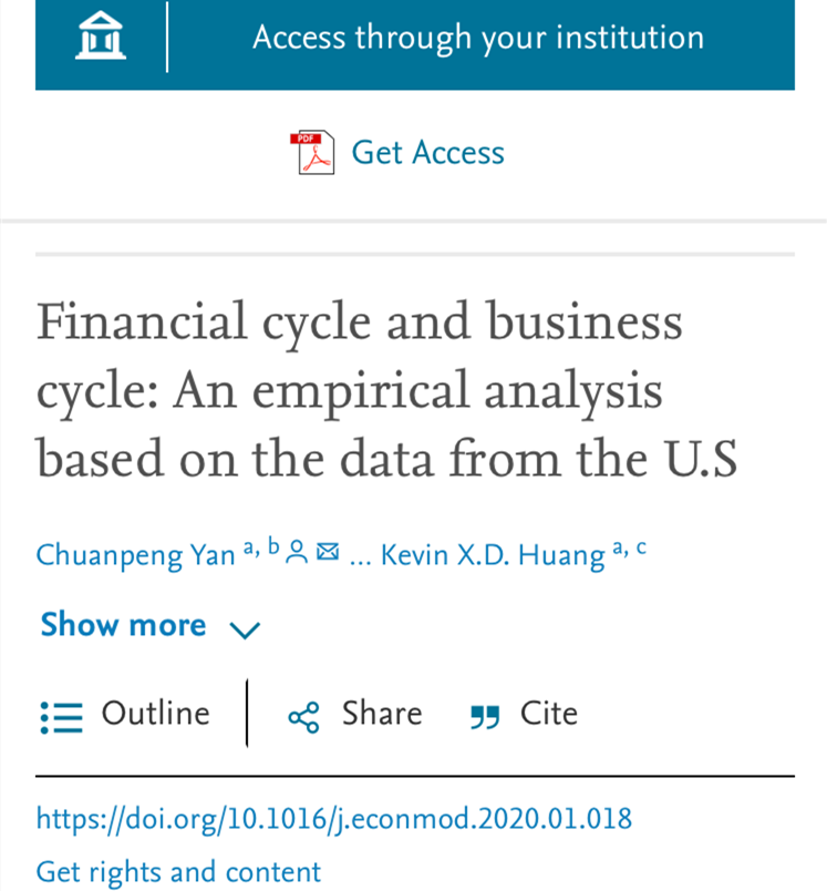 闫传鹏博士的一篇发表在“Economic Modelling”上的论文:《Financial cycle and business cycle: An empirical analysis based on the data from the U.S》(SSCI)被评为期刊年度最佳论文奖。