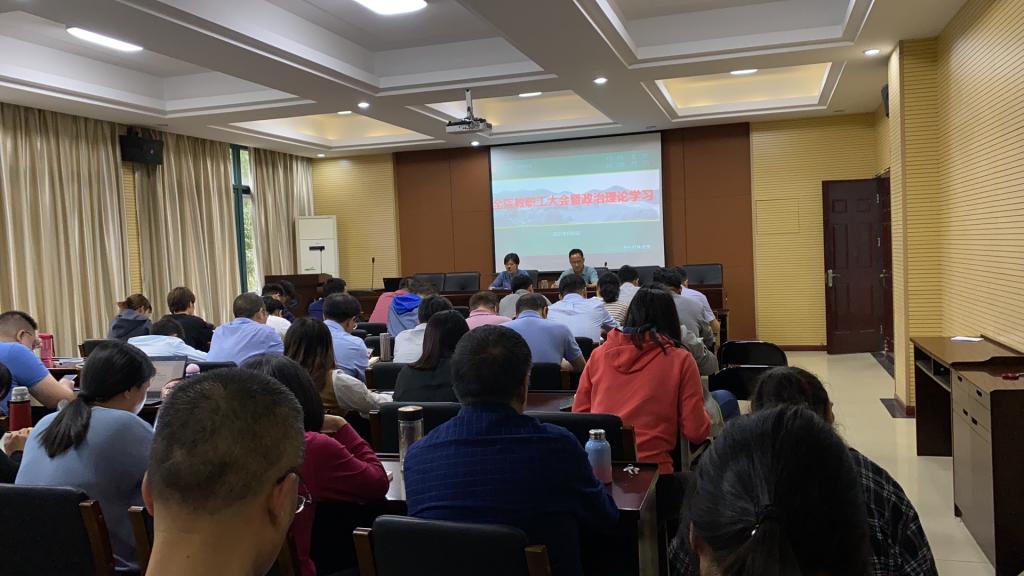 在A4-216会议室召开全院教职工大会暨教职工政治理论学习会,院党政领导、全体教职工参加。会议由院党委书记张掬婴主持。