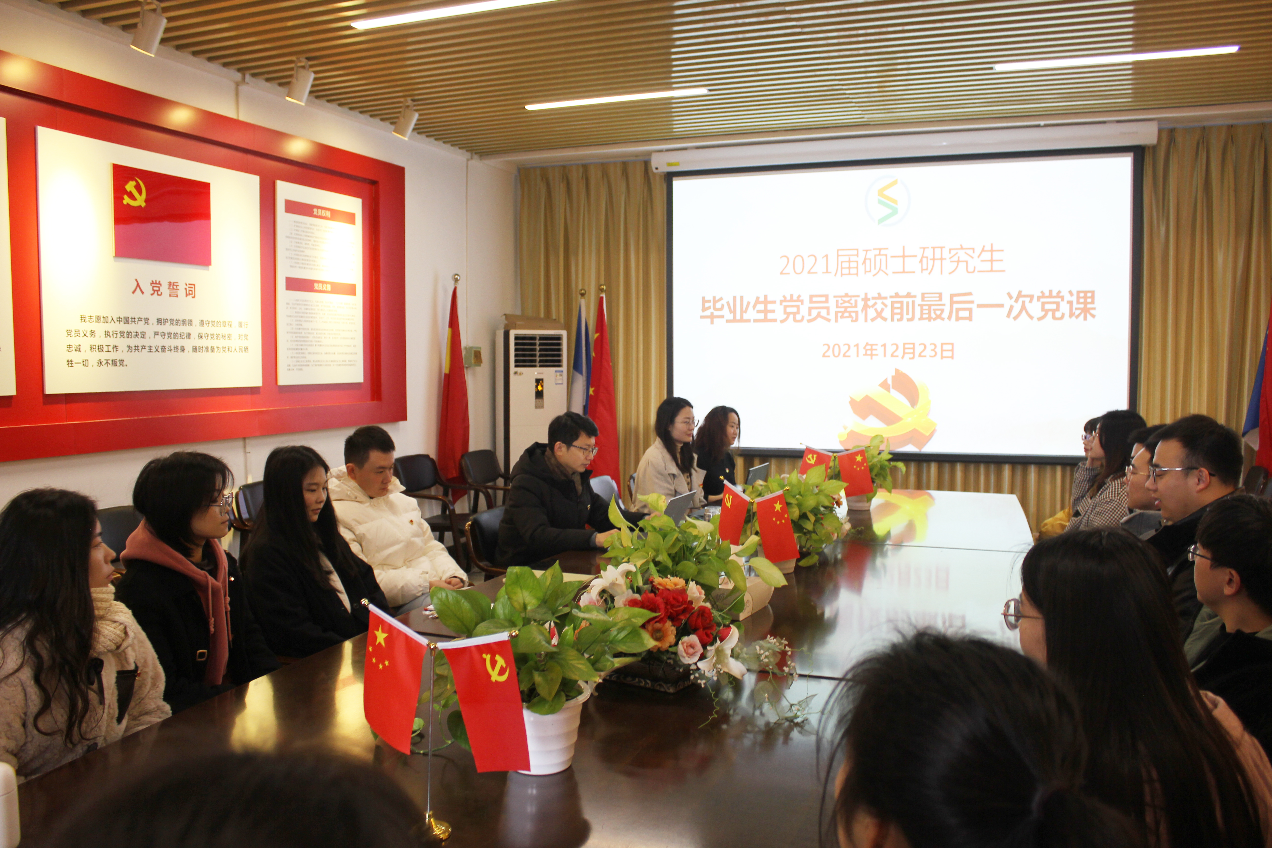 党委委员、副院长钱亚冠,组织员和全体2021届硕士研究生秋季毕业生党员出席。