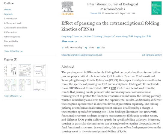 应用物理系孙婷婷教授团队在RNA共转录折叠动力学的研究方面取得重要进展。在《International Journal of Biological Macromolecules》(IF=8.023,中科院一区TOP)期刊上发表了题为“Effect of pausing on the cotranscriptional folding kinetics of RNAs”的研究论文(//doi.org/10.1016/j.ijbiomac.2022.09.115)。浙江科技亚洲博彩app