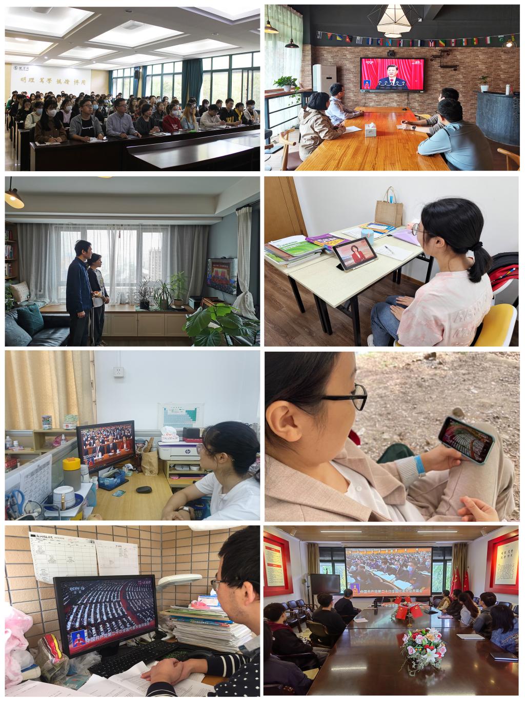 党委组织师生党员集中收看大会盛况。各支部组织所属党员同步收听收看。