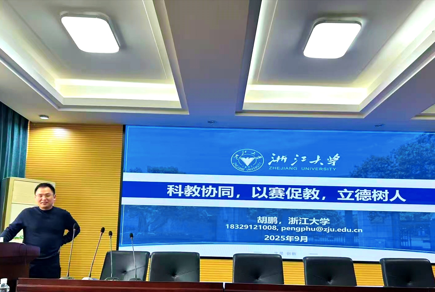 胡鹏教授结合个人教学与科研实践,通过构建“两性一度”(高阶性、创新性、挑战度)的课堂生态,系统阐述了“科教协同”的实现路径。胡教授深入剖析了教学竞赛对教师教学理念革新与能力提升的驱动作用,探讨了科研反哺教学、教学促进科研的良性循环机制,全面阐释了“以赛促教”的深层价值。同时,胡教授分享了以学科竞赛为载体激发学生创新潜能的实践案例,并深入探讨了新时代背景下“立德树人”根本任务的落实策略。最后,在人工智能+教学的背景下,胡教授对人工智能赋能教育教学的认识以及应用做了简单分析和分享。