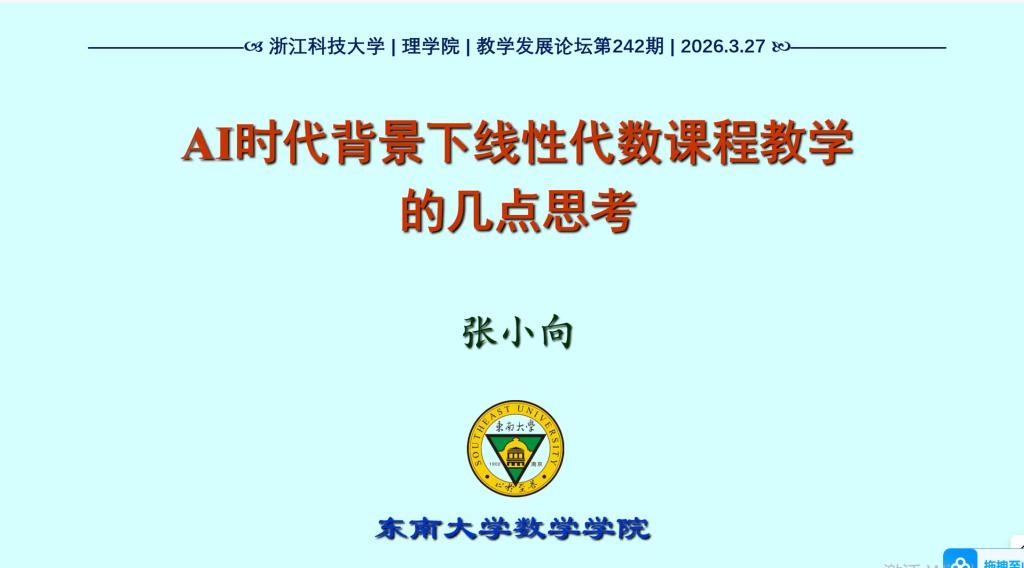 张小向教授应邀作了题为《AI时代背景下线性代数课程教学的几点思考》的教学论坛专题报告。报告由亚洲博彩app