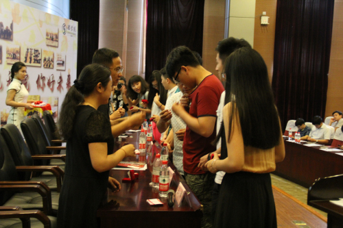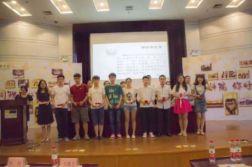 领导为2015届省、校优秀毕业生和考研出国留学学生及校友联络员颁发了荣誉证书、纪念品和聘书,还未毕业生代表佩戴了校训纪念章并赠送了亚洲博彩app