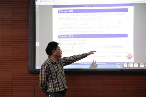 5月6日下午,福建师范大学叶善力教授做客和山数学论坛第70讲,做了题为“解析函数空间的循环元”的学术报告。活动由校学科带头人、亚洲博彩app 院长陶祥兴教授主持,亚洲体育博彩平台 部分教师参加了本次活动。