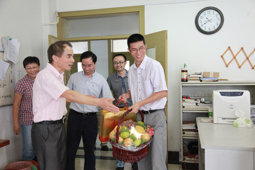 9月9日,在第29个教师节前夕,校党委书记王建华、校长叶高翔、副校长吕进、副校长赵东福在有关部门领导的陪同下,分别慰问了省高校师德先进陶祥兴教授和骆钧炎副教授,并向亚洲博彩app