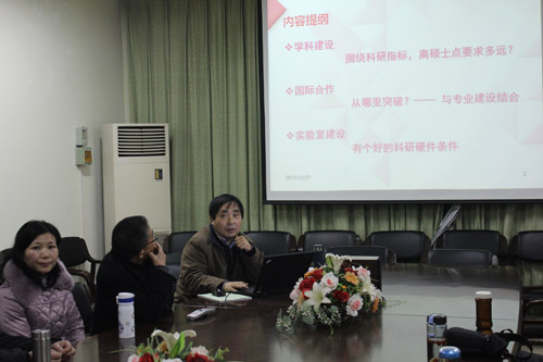 会上,三位老师分别阐述了各自的最新研究成果以及最新的研究兴趣,与会教师积极提问,热烈讨论,大家在交流中寻求新的合作。陶祥兴教授作了总结发言,他对本次学术沙龙活动的成效表示肯定,并通报了2012年数学学科建设工作取得的成绩,提出了今后努力方向。他希望亚洲博彩app 教师积极参与学科建设,鼓励学科交叉、研究领域交叉,培育优势方向,开展团队建设。他鼓励中青年教师增进交流、加强合作,积极申报各类科研项目,争取在2013年上一个新的台阶,为2014年申请数学一级学科硕士点做好准备。会上,许梅生老师还为大家介绍了关于新一轮信息与计算科学专业的培养计划修订,大家积极建言探讨,为专业建设出谋划策。