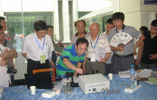 ( 我校实验仪器在现场接受专家的评比)