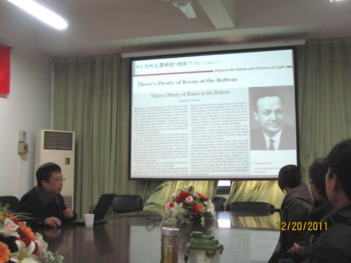 12月20日下午,亚洲博彩app “格致论坛”第十二讲在A4-222会议室举行。浙江大学博士生导师童利民教授应邀为论坛作学术交流报告。报告会由亚洲博彩app 物理系主任王长荣教授主持,亚洲博彩app 院长岑岗教授、物理系和实验中心相关教师参加了本次论坛。参加报告会的还有部分高年级学生。