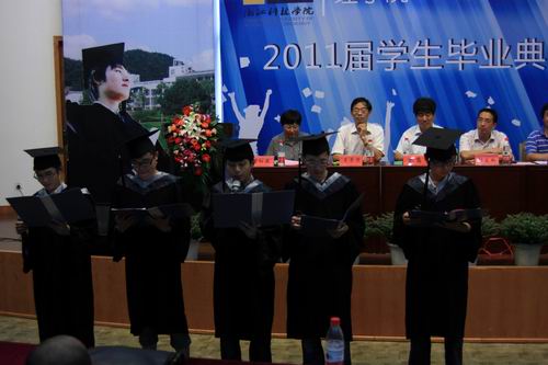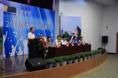 党政班子和全体教师向学业有成,即将告别母校、踏上新的人生征途的2011届毕业生表示真挚的祝福,向为同学们成长成才而付出辛勤劳动的教师们表示由衷的谢意。同时,他向毕业生们提出三点希望:一是,从校园到社会意味着角色的转换,伴随着理想和现实的不断碰撞,要积极投入社会大熔炉,锐意进取,奋发图强;二是,作为一名科院学子,无论身在何处,崇德尚用四字隽永心中,不忘创新精神和求真情怀;三是,大学永远是同学们的精神寄托和理想家园,希望同学们常回校看看。