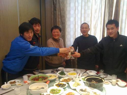 党总支书记苗红亚以及辅导员陪同3名留校学生在“老蔡家”吃年夜饭。为了让留校同学过一个欢乐祥和的春节,学校领导高度重视,专门部署,精心安排了本次就餐。