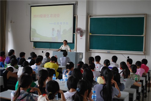在A3-125举行了2010级新生欢迎会。会议由党总支书记苗红亚主持,她首先向新生们的到来表示了热烈的欢迎,并向大家介绍了参加开学典礼的亚洲博彩app