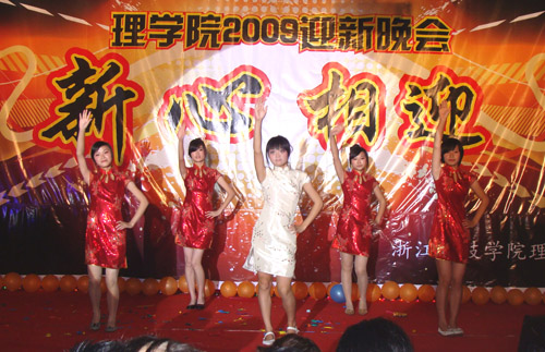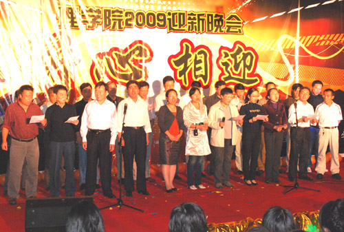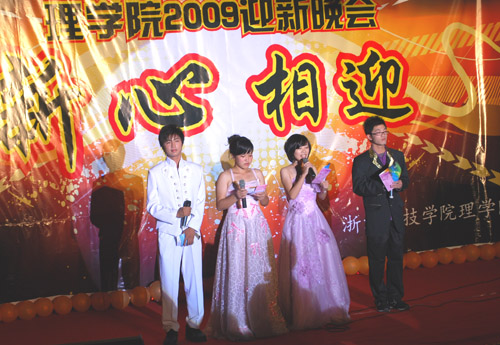 “新心相迎”2009迎新晚会在A4-122隆重举行。校党委书记徐志平、校党委副书记胡浙平、校学生处、团委负责人应邀出席晚会。亚洲博彩app