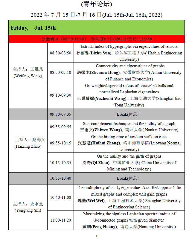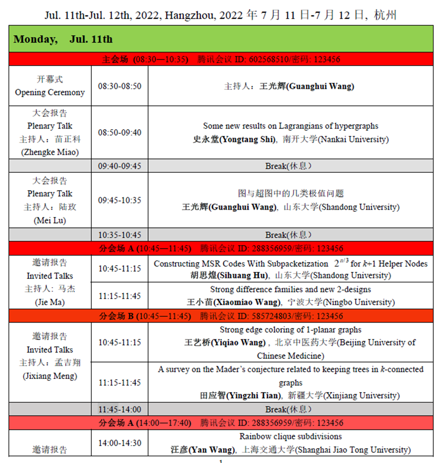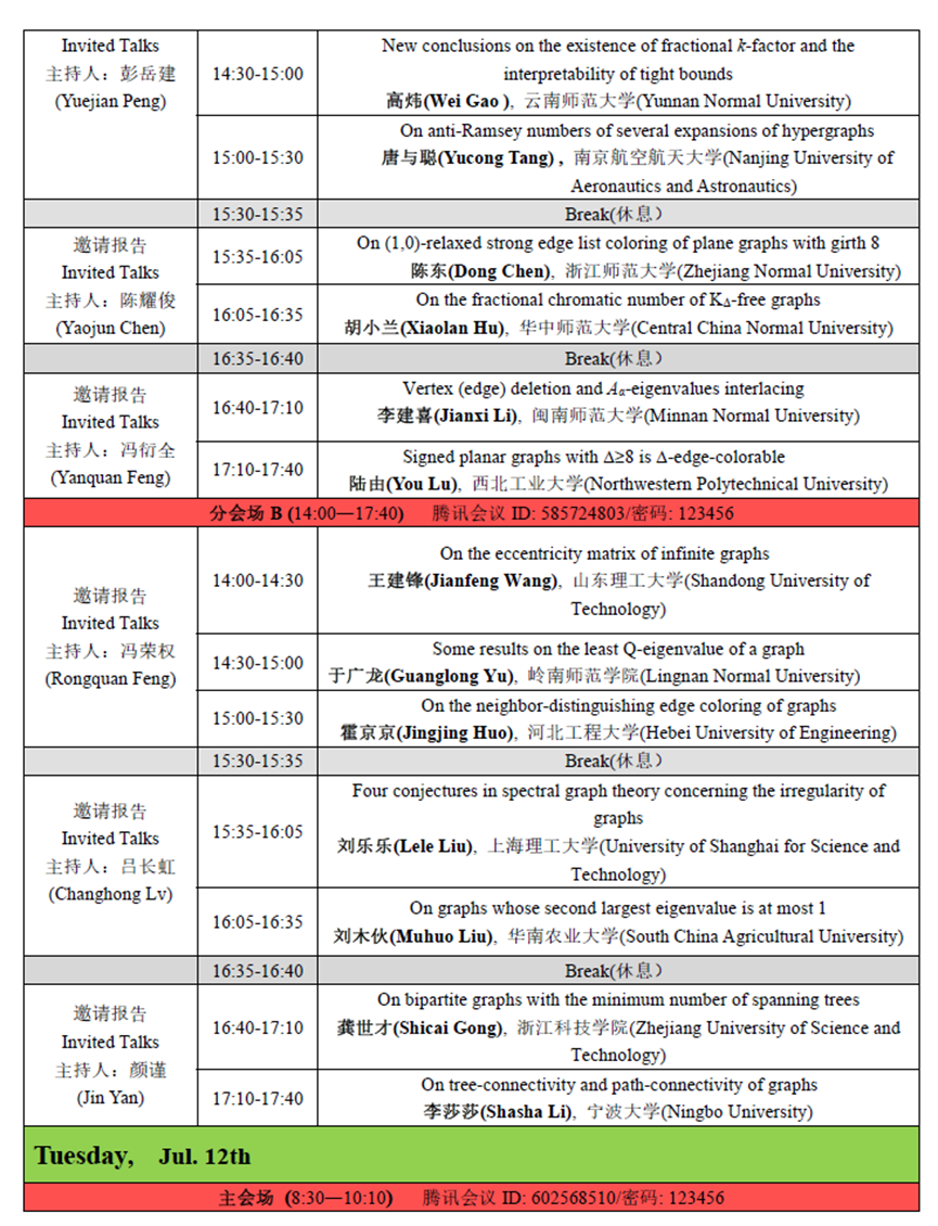 1.第一阶段(2022年7月11日--12日):大会报告和邀请报告
