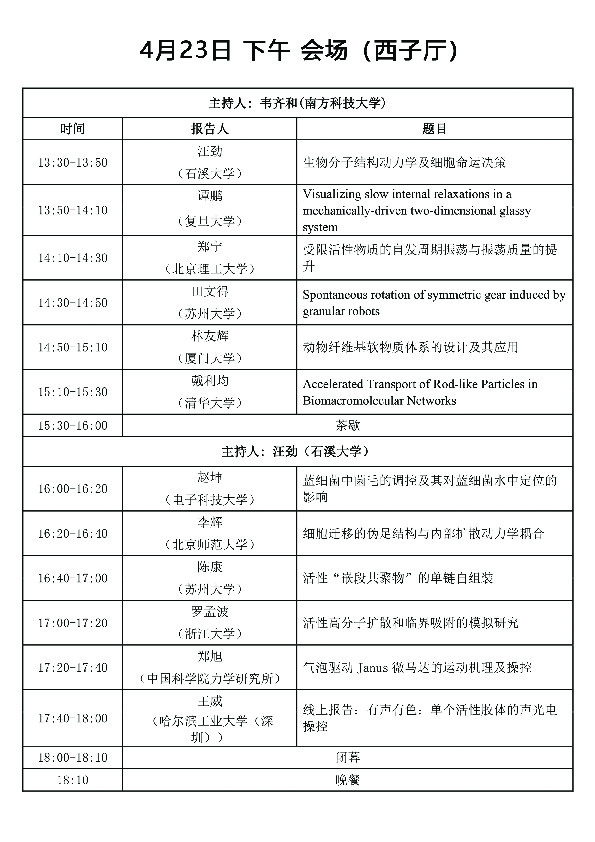 本次会议由杭州师范大学、浙江科技亚洲博彩app 、中科院物理所联合主办,旨在促进基础统计物理的发展,推进原创性科学的发现,并寻求从基础到应用的跨越。会议汇集全国此领域内的众多知名学着,瞄准学科前沿和发展趋势,研讨学术、交流思想、分享经验,聚焦于非平衡系统中涌现的有趣现象,发掘深层次的非平衡态统计物理基本规律,加深对生命体系的理解,并促进活性软物质在生物、医学、材化等多学科的应用。会议日程如下: