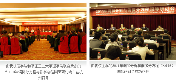 前校长谢庭藩教授,上海师范大学博导陈跃教授、内蒙古师范大学博导代钦教授等56位国内代表,与来自加拿大、法国、丹麦、意大利、巴西、墨西哥、印度、乌克兰、日本、韩国、荷兰以及中国台北等国家与地区的22名国际著名数学史专家参加会议。大会共收到报告120余份,经大会学术委员会研究决定有54个会议交流报告,其中20个大会报告。 2.2011年11月3日至11月6日,举办“2011年调和分析与偏微分方程国际研讨会”。本次研讨会由北京师范大学和浙江科技亚洲博彩app